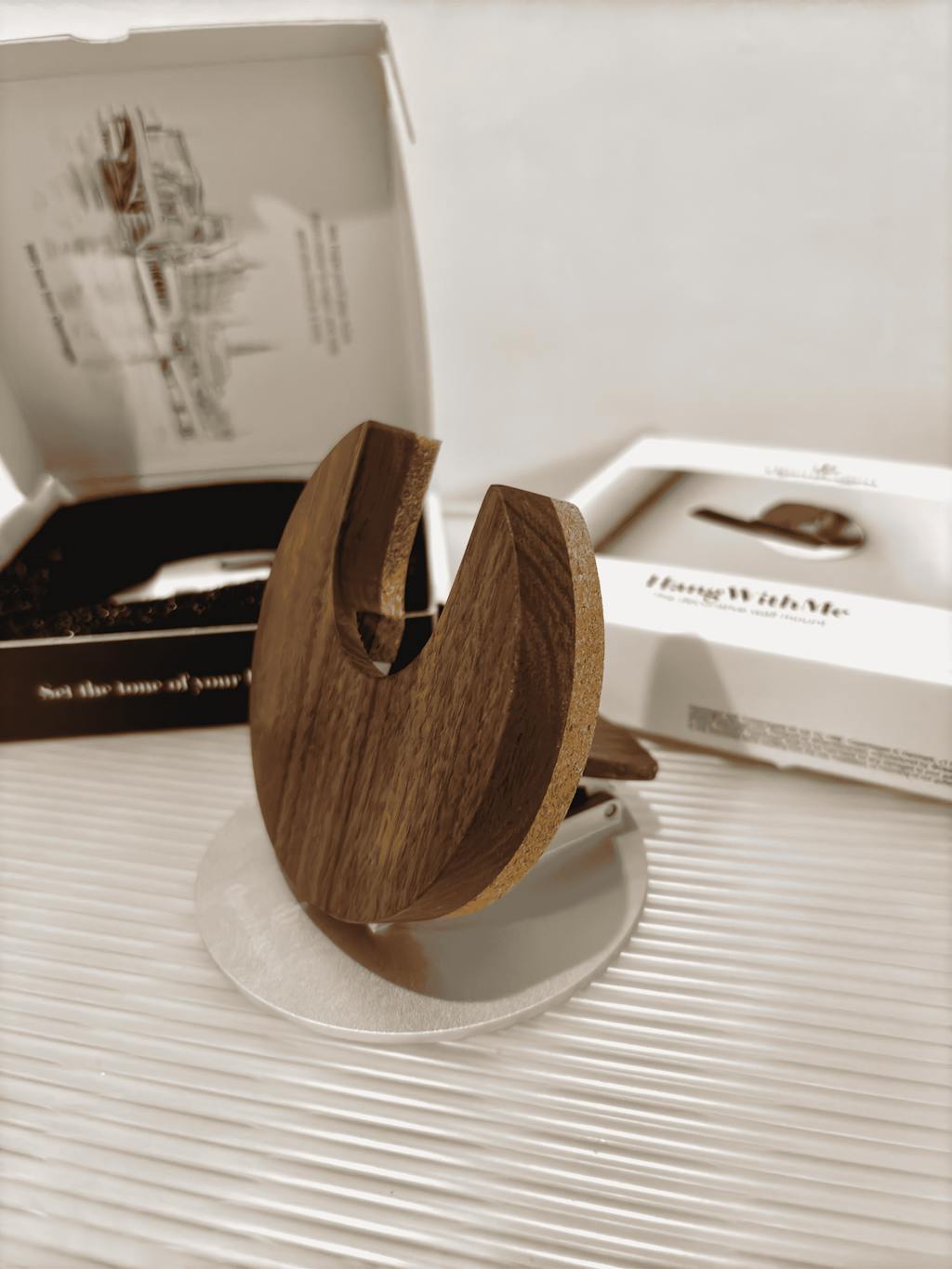 Patentiertes Fold-Flat-Design verwandelt sich bei Nichtgebrauch in einen klaren hölzernen Kreis.