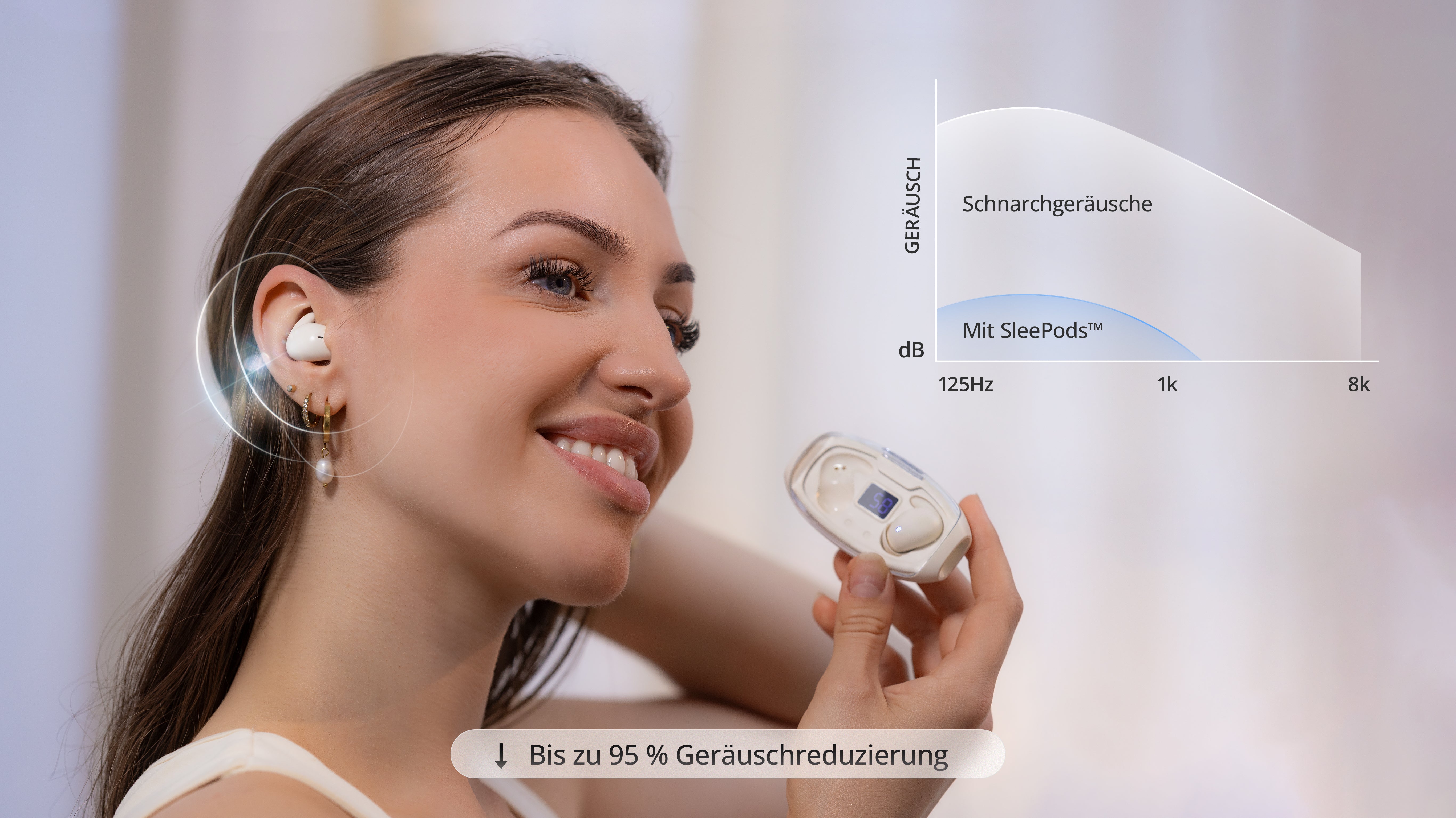 Absolut. SleePods™ kombinieren aktive Geräuschunterdrückung (ANC) mit passiver Geräuschisolierung, um Schnarchen, Verkehrslärm und andere Störungen deutlich zu reduzieren – ohne den Tragekomfort herkömmlicher Ohrstöpsel.