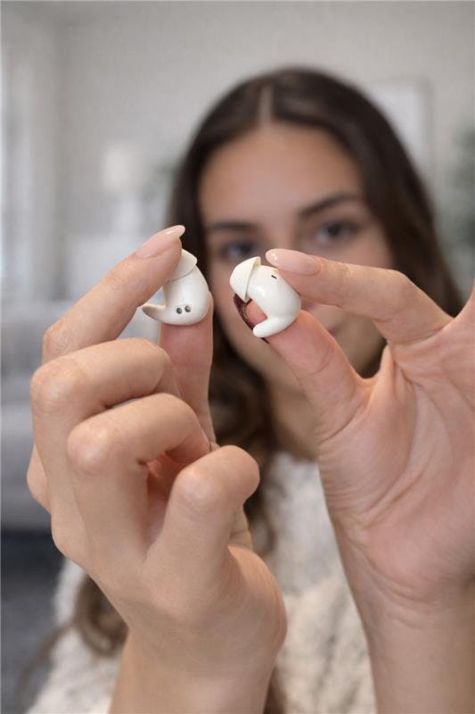 Les SleePods™ vous offrent une nuit paisible grâce à la musique, la réduction de bruit et un confort optimal, même avec un oreiller. Dotés d'un système ANC à 4 microphones, d'une conception ultra-douce et d'un design danois en instance de brevet, ils sont conçus pour vous aider à dormir, à vous concentrer et à vous ressourcer.